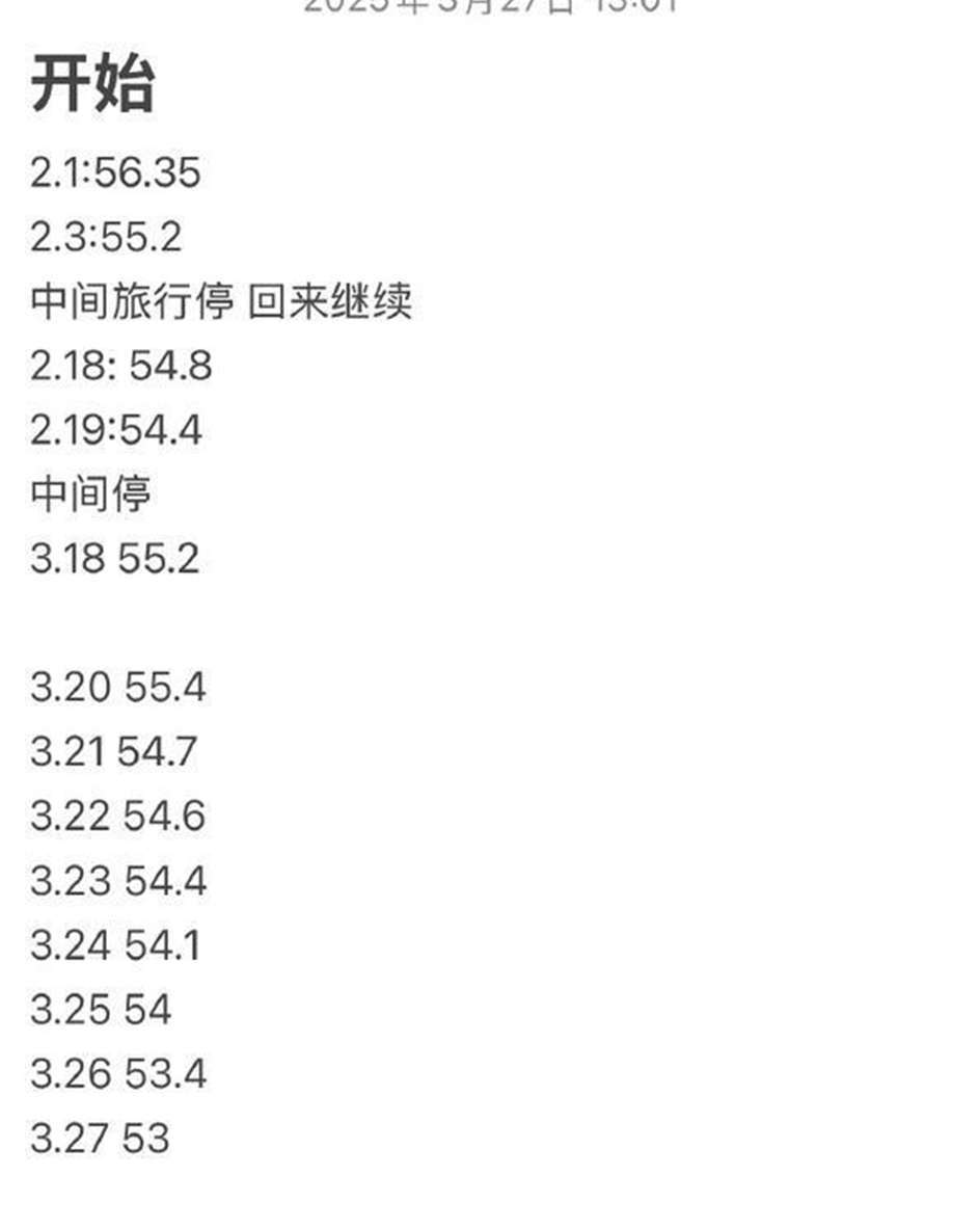 说起来,张馨予这一路减肥可不容易。2月1日,她正式踏上了减肥之旅。那天,她的体重是56.35公斤,她就像一个战士一样,决定和身上的赘肉死磕到底。可从这天起,她的减肥进程就时不时地遭遇点“小插曲”。比如说中途出去旅行,这一玩起来,体重就有点不听话了,反弹了些。这就好比一场马拉松比赛,跑到一半突然遇到了个小水坑,把节奏都打乱了。不过,张馨予并没有因此就放弃,她调整好状态,继续前行。